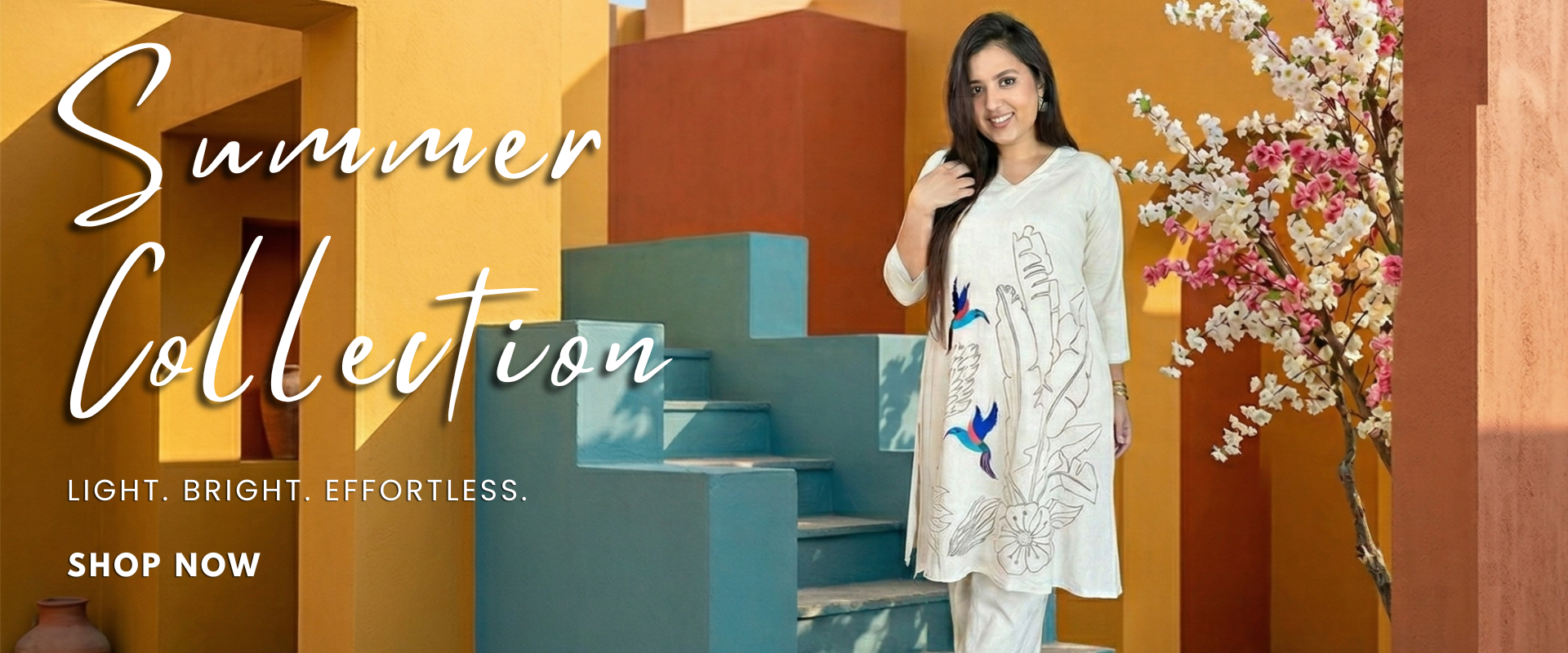 Cream Khadi Cotton Kurti Set With Dupatta For Women