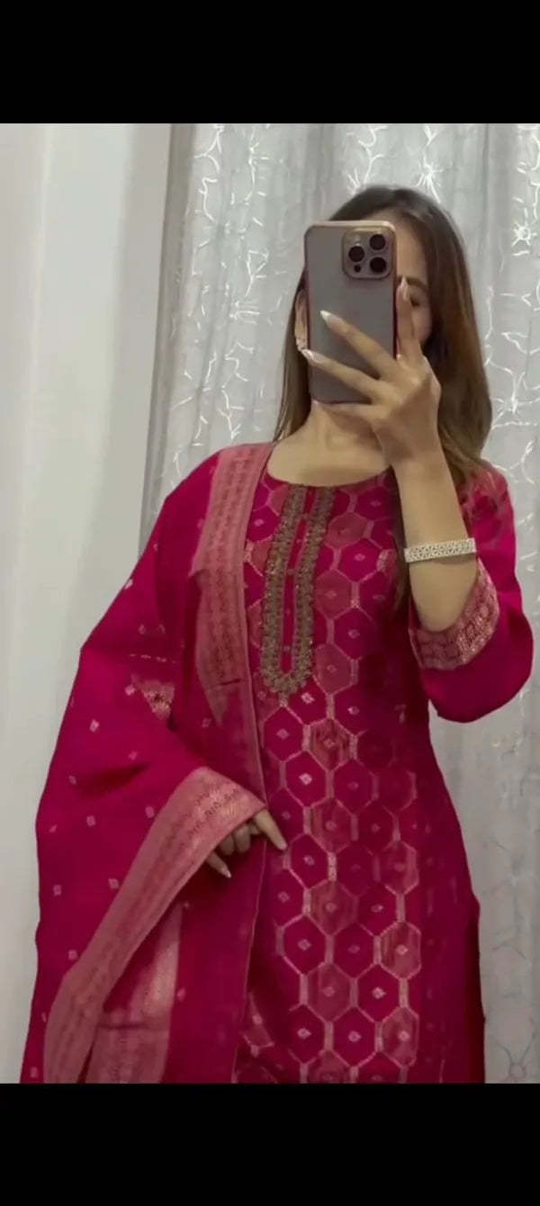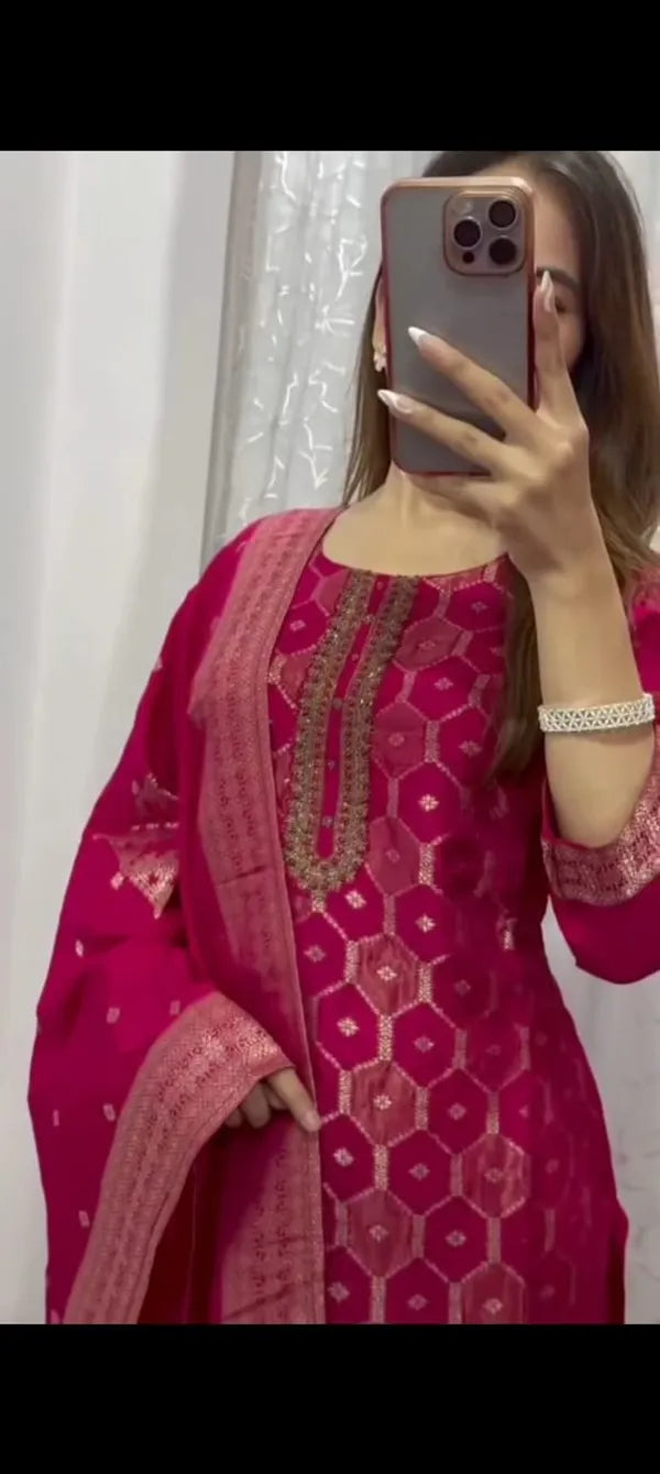 PREMIUM RESHMI PINK SUIT SET