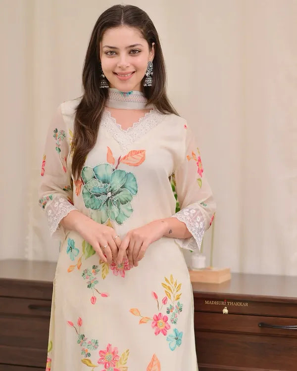 Anarkali Flared Kurti Pant Dupatta Set