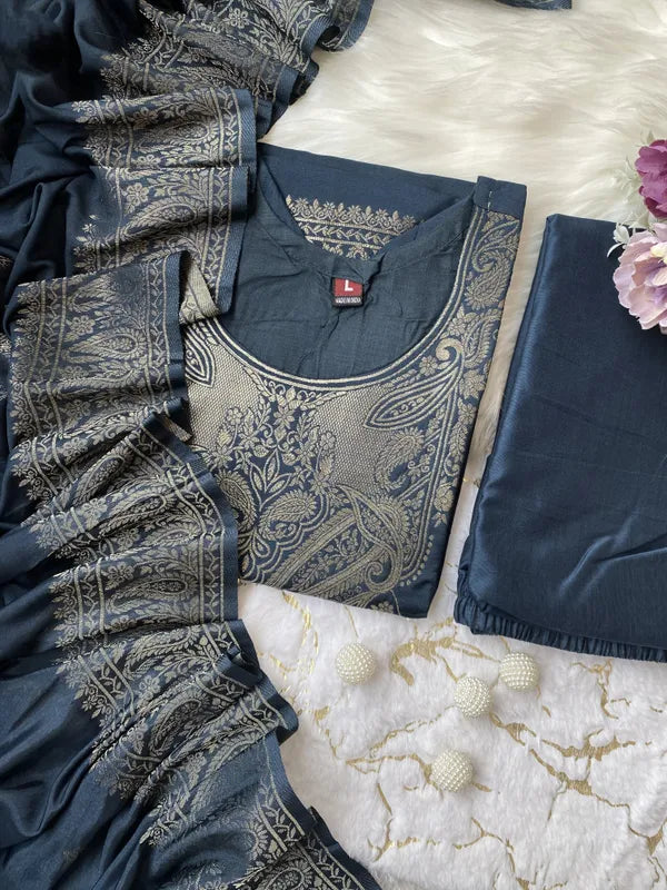 Blue Designer Straight Kurta pant with duppata set